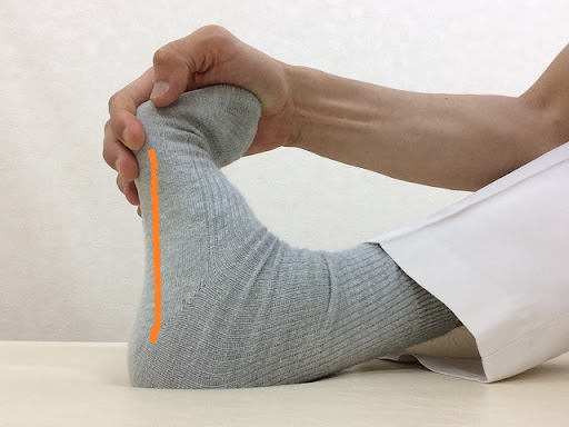 - 침대에서 다리를 곧게 펴고 발끝을 몸 쪽으로 끌어당겨 종아리 근육을 이완합니다.