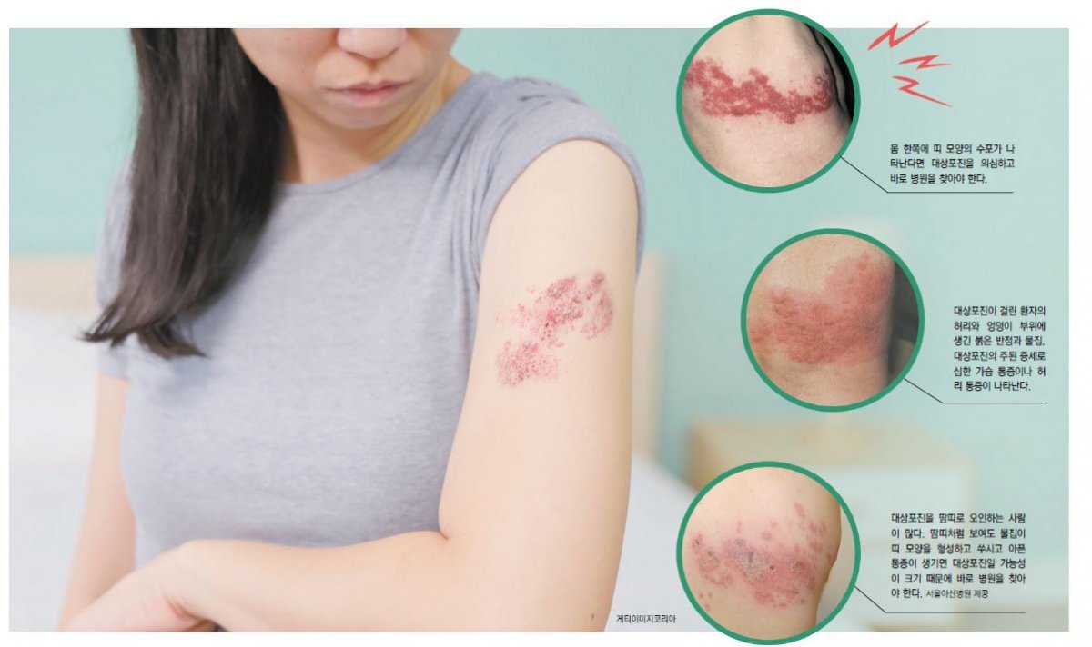 대상포진은 수두바이러스의 일종으로, 흔히 피부 상에 발진과 더불어 발열, 두통, 근육통 등 다양한 증상을 유발합니다. 이 질환은 주로 신경 조직을 따라 발생하는 피부의 통증을 특징으로 합니다. 수두바이러스의 재활성화로 인해 신경에 특히 영향을 주는데, 이는 대개 환자가 수두를 겪은 적이 있을 때 발생합니다.