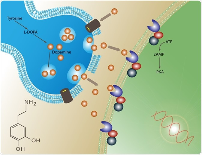 도파민 작용의 핵심 흐름은 다음과 같습니다.