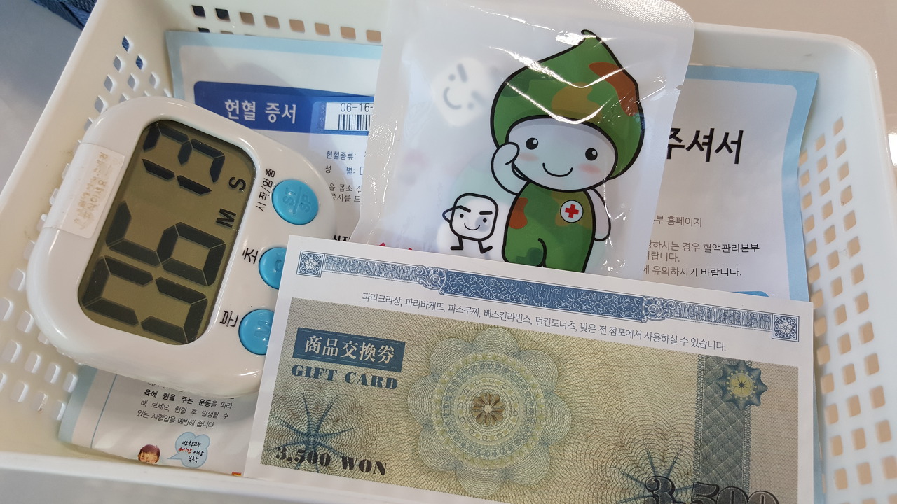 2016년 전혈, 혈장 헌혈자 기념품을 추가로 제공해서 2개를 선택할 수 있더군요. 아쉬운 것은 예전 헌혈을 잠실 헌혈의 집에서 했는데, 거긴 생월에 헌혈하면 백참을 하나 더 준다고 했었거든요. 전에 다니던 회사가 석촌동이라서 잠실에서 헌혈했었는데... 회사를 옮겨서 백참 하나 더 챙기는 건 못했네요.