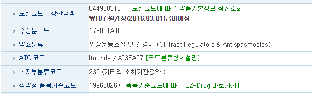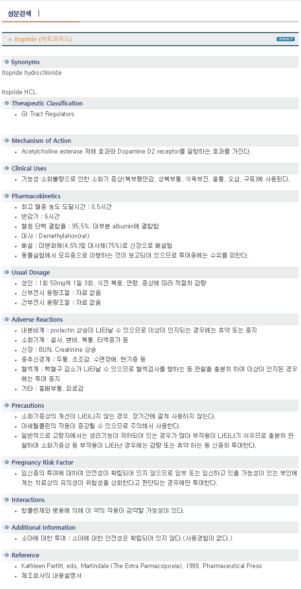 - 효능 및 효과: 기능성소화불량으로 인한 소화기증상(복부팽만, 상복부통, 식욕부진, 속 쓰림, 구역, 구토)을 완화