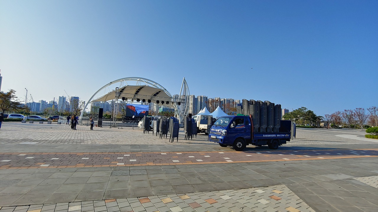 아무튼 콘서트 공연은 7시부터지만 4시반에 집결해서 의자 깔고 행사 부스 도우미 등을 하고 있다.