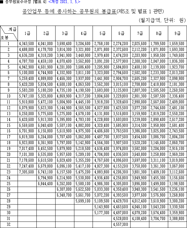 2021년 공무원 봉급표